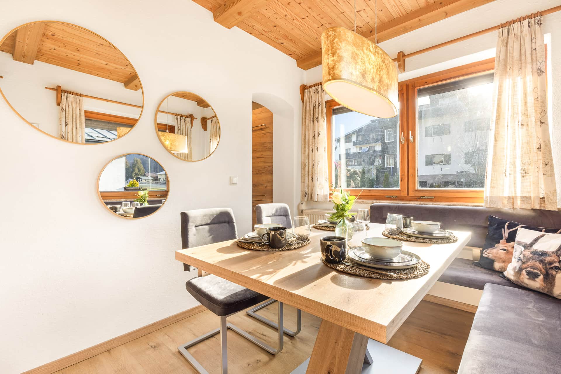 Unsere Ferienwohnung 1 befindet sich im 1. Stock des Hauses. Sie hat ca. 50 qm Wohnfläche und ist geeignet für 2-4 Personen. Sie haben einen wunderschönen Blick Richtung Kehlstein mit dem berühmten Kehlsteinhaus.